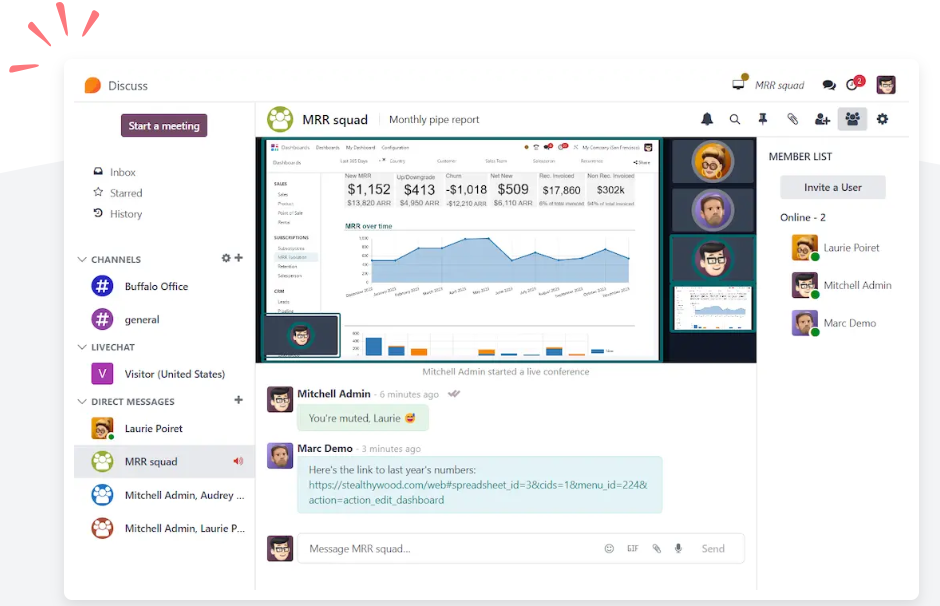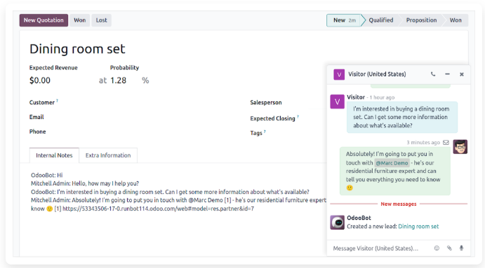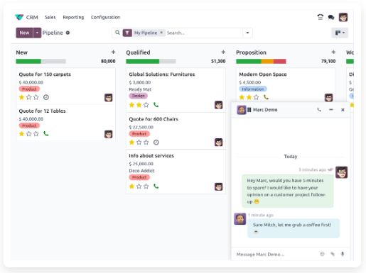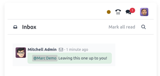 Conversaciones está integrada en todas las aplicaciones de Odoo