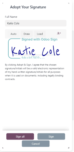 Olvídate de imprimir y escanear: la aplicación permite solicitar y obtener firmas electrónicas de forma segura y en minutos. Integrar firmas digitales en tus flujos reduce tiempos de ciclo en contratos, ofertas y aprobaciones, y garantiza trazabilidad jurídica y operativa. Los documentos se integran con facilidad con más de 80 aplicaciones de Odoo.