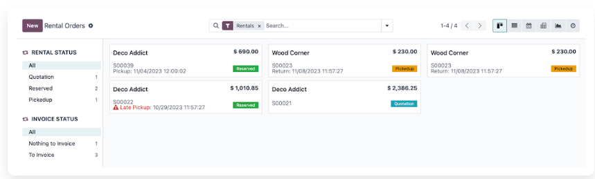 Solo necesitas un clic para saber quién recoge y quién devuelve los productos. Conoce el estado de los alquileres y las facturas desde un solo tablero.