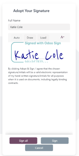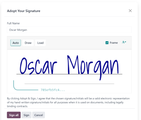 - ⚖️ Cumplimiento legal internacional: Firma Electrónica de Odoo es 100 % legal y cumple con las normativas internacionales de firma electrónica: eIDAS (Europa), ESIGN (EE. UU.), ITA e ICA (India), y legislaciones equivalentes en la mayoría de los países.