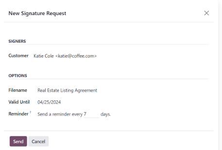 Con Firma Electrónica de Odoo, olvida los procesos largos y los trámites en papel. Esta solución te permite enviar, firmar y aprobar documentos en línea de forma segura y legal, optimizando cada etapa de tus flujos empresariales.