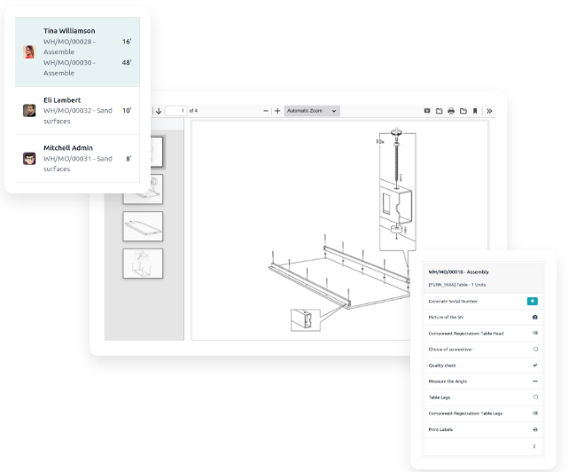 - 🔍 Trazabilidad completa: Monitorea componentes, administra lotes y números de serie y visualiza todo el flujo de producción con un solo clic.