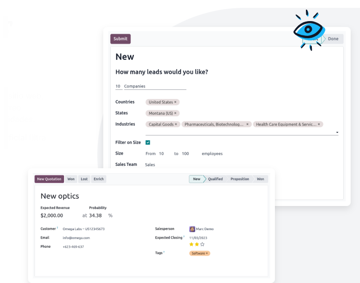 ¿Imaginas tener todas tus herramientas comerciales en un solo lugar? Con Odoo Ventas, puedes automatizar cotizaciones, gestionar clientes, aplicar precios dinámicos y cerrar tratos en minutos.