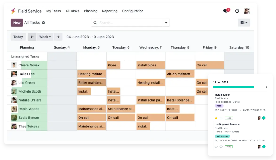 Una correcta planificación es clave para garantizar la eficiencia en campo. Odoo ofrece múltiples vistas que permiten organizar las actividades según las necesidades del equipo.