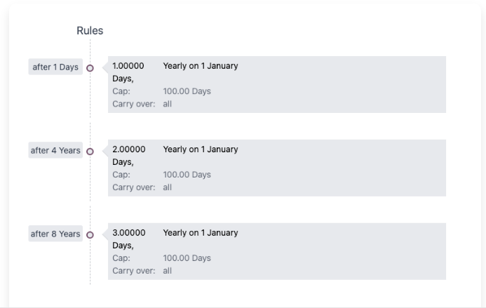 - 📈 Planes de acumulación: configura planes personalizados que asignen automáticamente tiempo adicional cuando los colaboradores alcancen ciertos objetivos o antigüedad establecida.