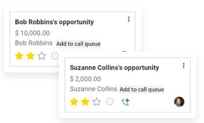 La integración con CRM permite estructurar la gestión de llamadas dentro del flujo comercial. Desde la vista kanban, los usuarios pueden programar actividades directamente sobre las oportunidades.
